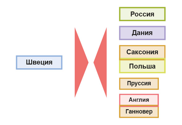 Полки Англии, Испании, Франции, Швеции, Австрии, Баварии, Саксонии, Пруссии