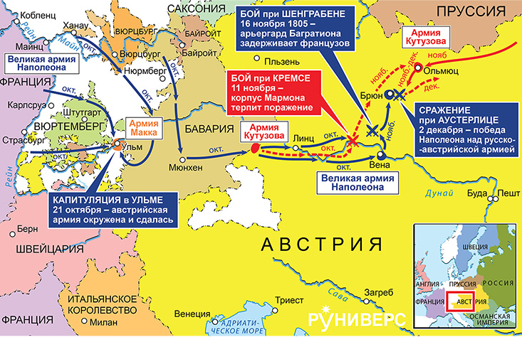 Действия в Баварии и Австрии (сентябрь-ноябрь) и в Моравии (ноябрь-декабрь) 1805 г.