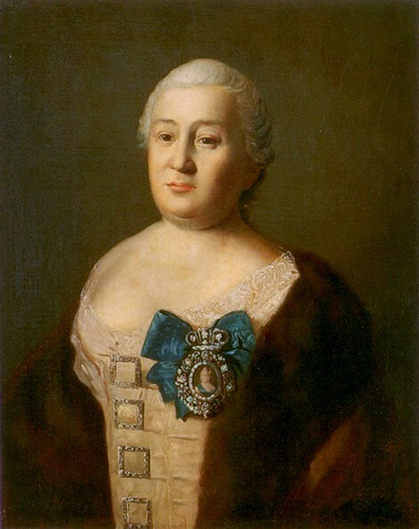 Портрет статс-дамы графини Мавры Егоровны Шуваловой (урожд. Шепелевой) с портретом императрицы Елизаветы Петровны на муаровой ленте
