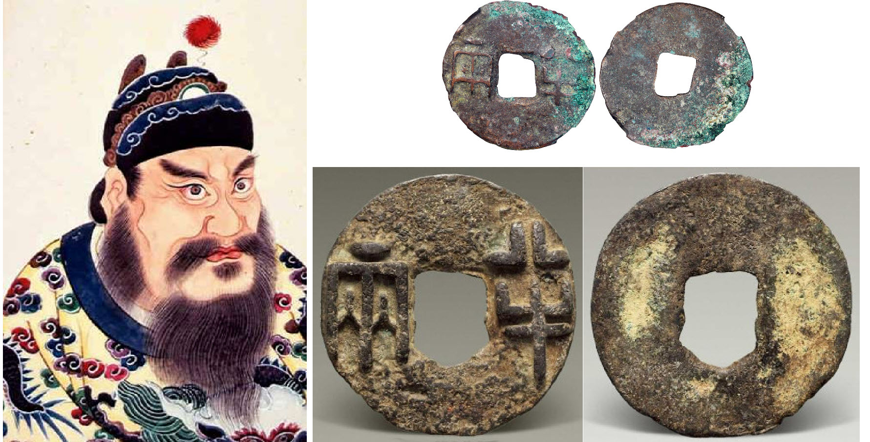 Сверху - монета Деспот Цинь Шихуан
