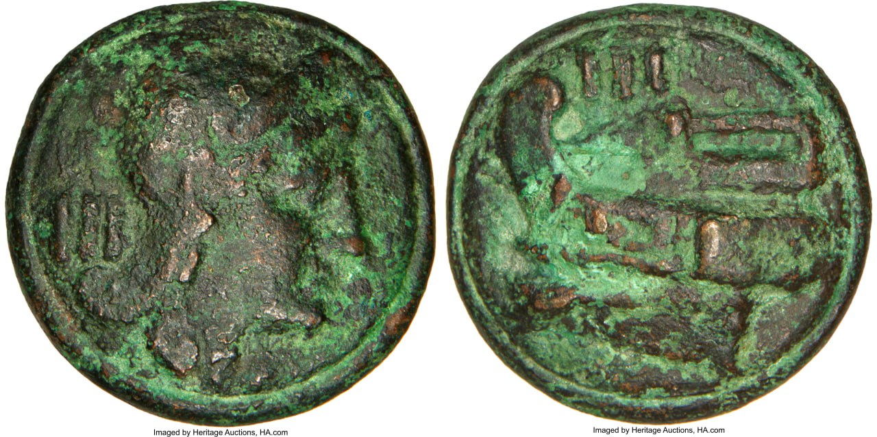 Римская прото-монета 215-212 до н.э., литой бронзовый трессис