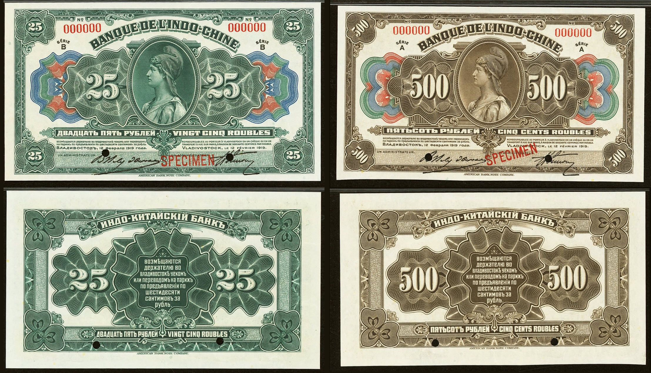 Россия, Владивосток, Banque de Indochine, 25 рублей, 1919 г. и 500 рублей 1919 г.