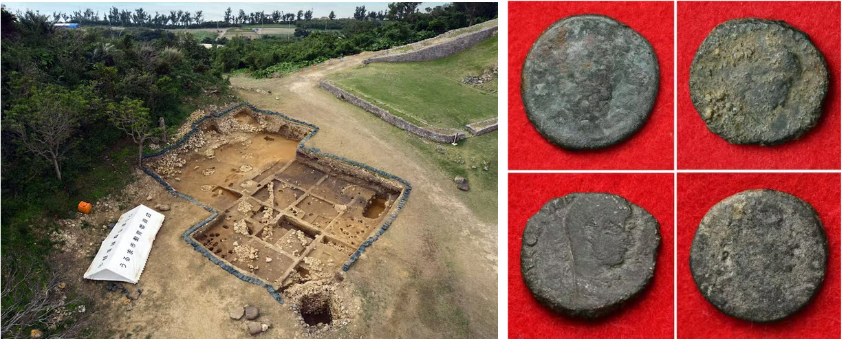 В 2016 г. на Окинаве на раскопках руин средневекового замка Кацурэн (勝連城跡, Katsurenjō-ato) были найдены медные монеты Константина I (IV в)