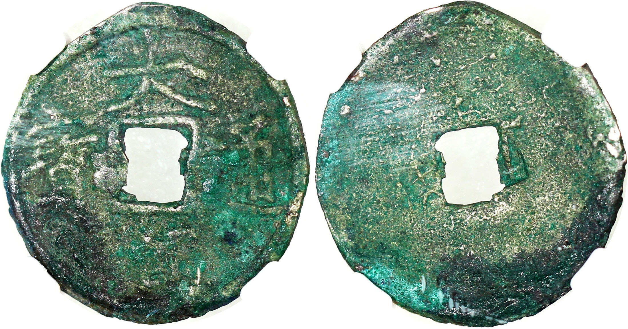Dà cháo tōngbǎo, серебро, 23,2x1,9 мм, 3,7 г. из коллекции одного из крупнейших собирателей китайских монет, доктора Вернера Бургера (Werner Burger, первый в мире историк, получивший PhD в области китайской нумизматики), скончавшегося в 2021 г. Продано за скромные $2000 на Spink. Встречаются такие же монеты с надчеканкой тамги ханов, например, Угэдея, на реверсе.