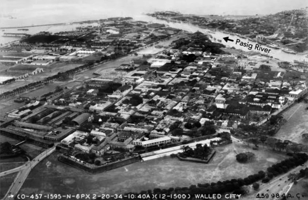 Вид на Старый город Манилы, основанный испанцами, с воздуха. 1934 г.