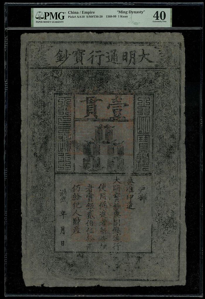 Прекрасный образец 1 цянь Dà Míng Bǎo Chāo, стоимость порядка 5200 долларов