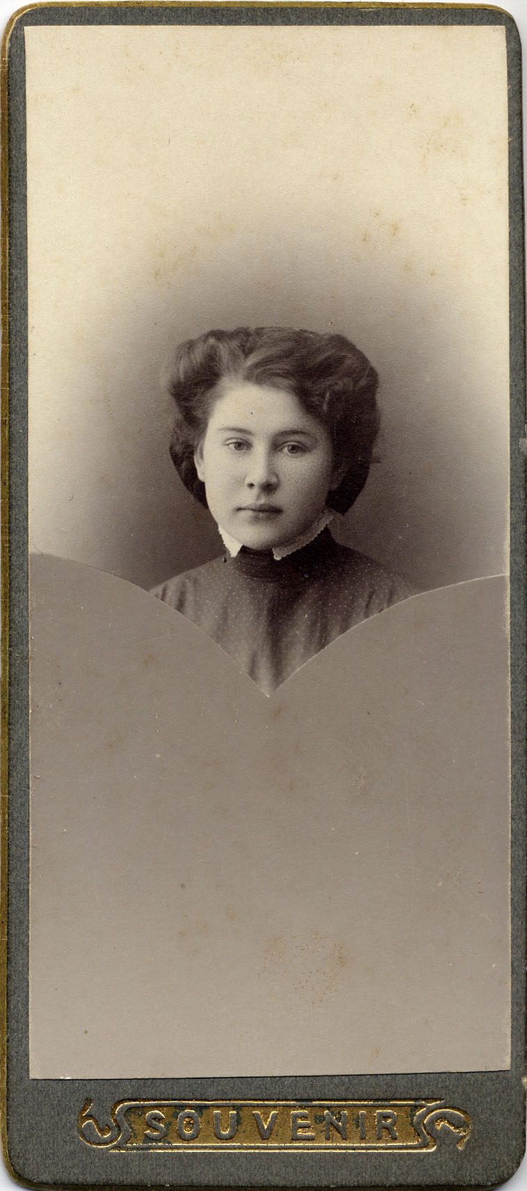 Портрет девушки. На обороте надпись: “На память дорогой Елене Николаевне от Раи Г. 1912 г. 15-го февраля. Арзамас, д. Лишенкова”.