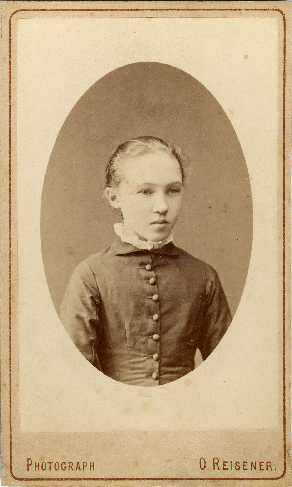 Фотограф О. Рейзнер, С. Петербург. Портрет девочки. На обороте надпись: “На память от племянницы и сестры Мани моим дорогим родственникам. 20-го июня 1883 года”.