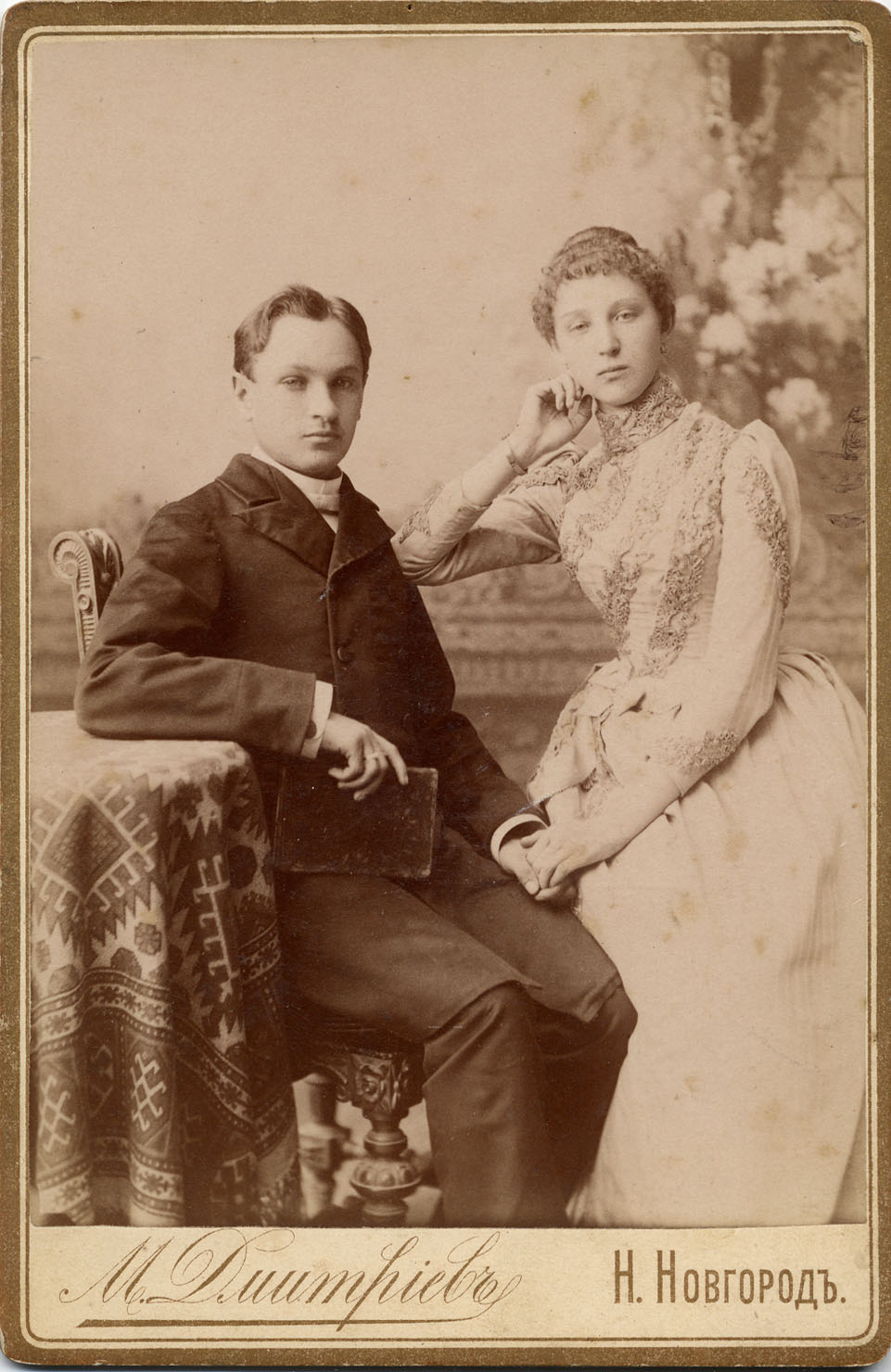 Фотограф М. Дмитриев. Портрет молодой семейной пары. Н. Новгород, 1890-е г.