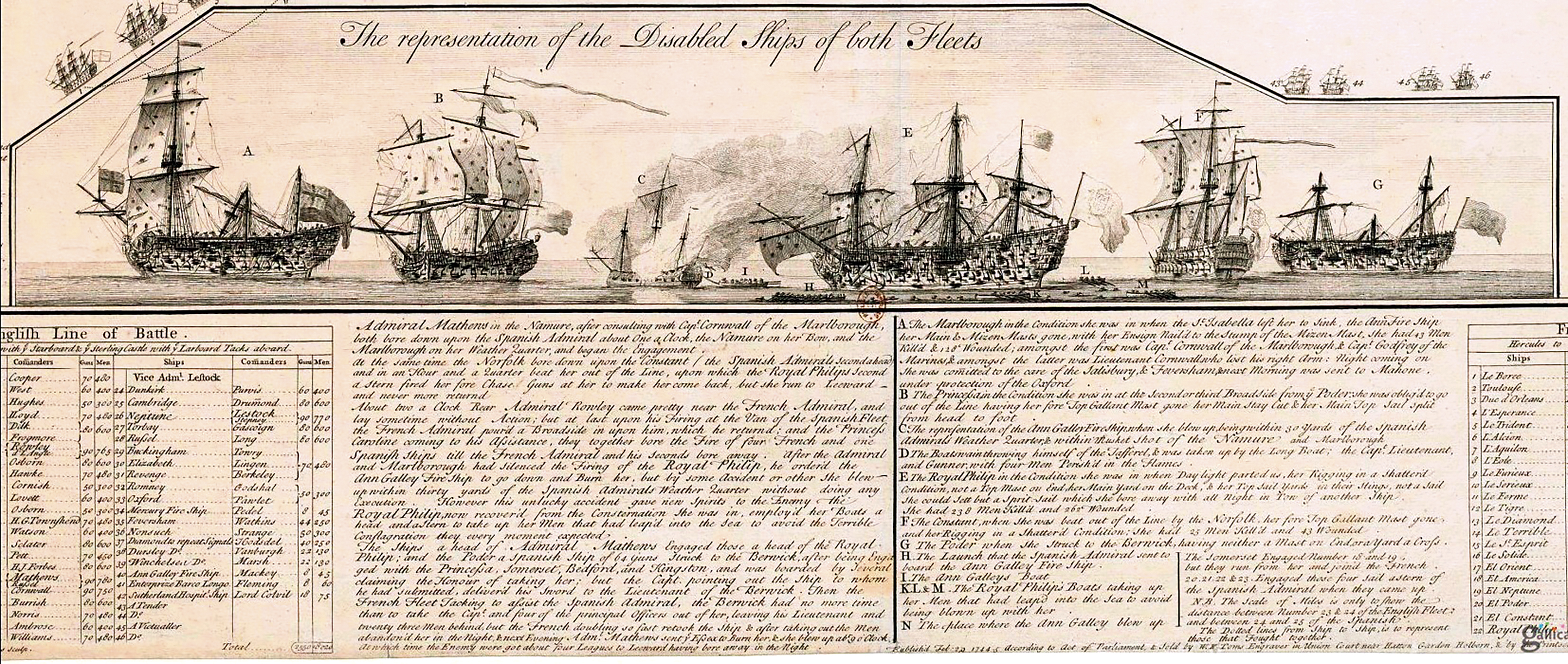 Изображение поврежденных в сражении при Тулоне английских и французских кораблей