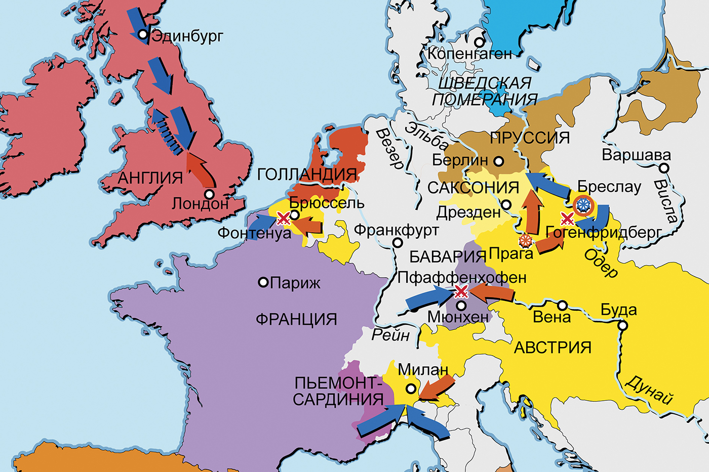 Полки Англии, Испании, Франции, Швеции, Австрии, Баварии, Саксонии, Пруссии