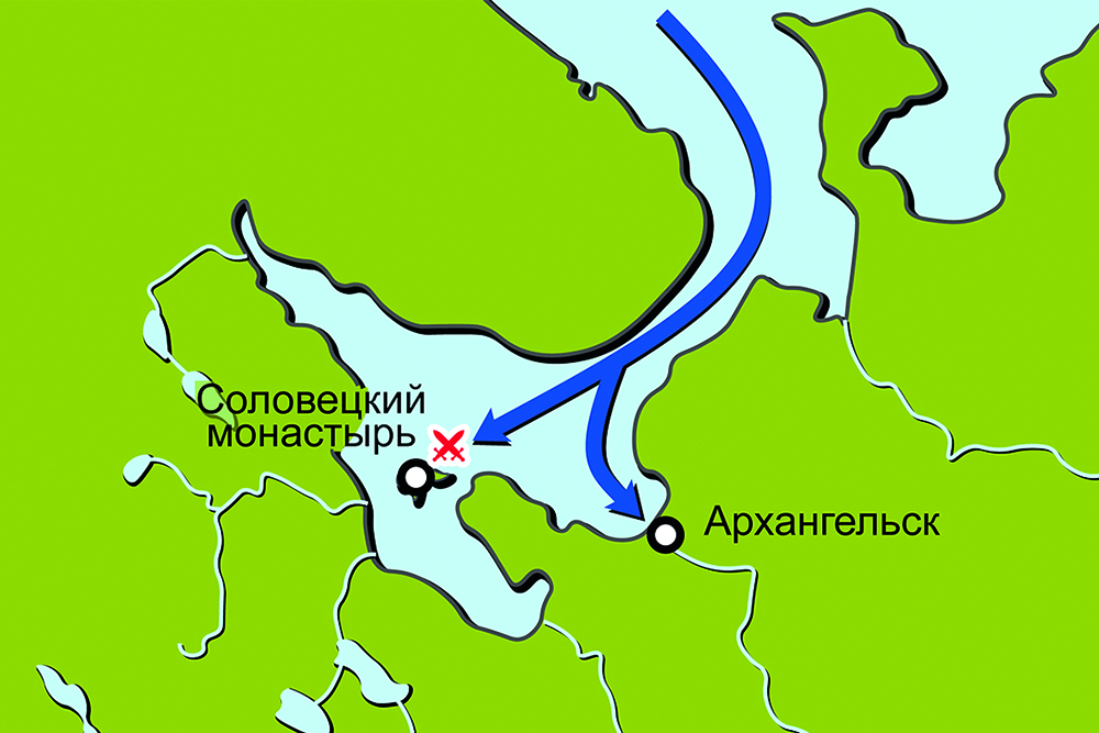 Карта кампании 1854 г. на Белом море (Крымская война 1853–1856 гг.)