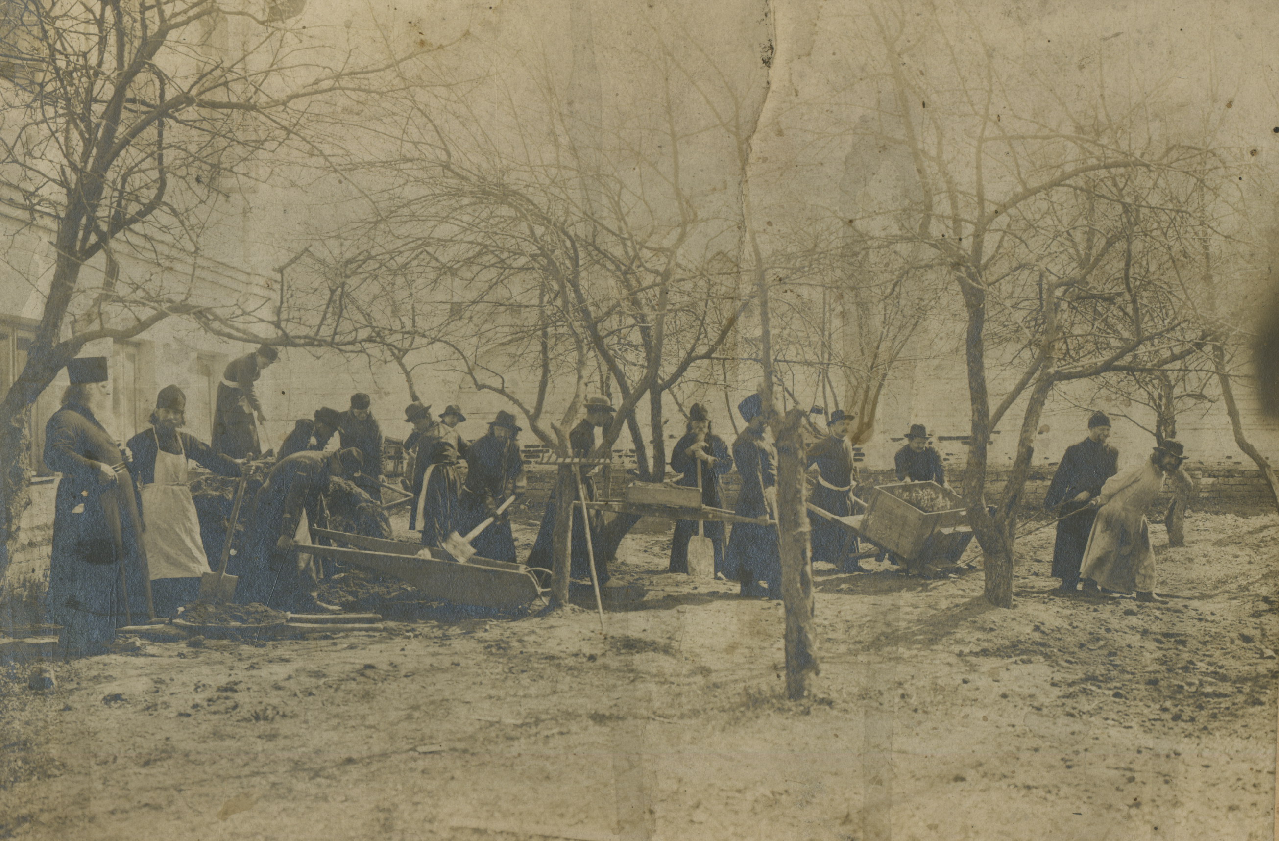 Неизвестный фотограф. Уборка территории в Муромском Благовещенском монастыре. 12 мая 1914 г. 17 х 22. Собрание Муромского историко-художественного музея. М-16210.