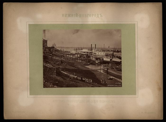 Вид на Похвалинский съезд, Нижний базар и рейд реки Волги. Нижний Новгород.