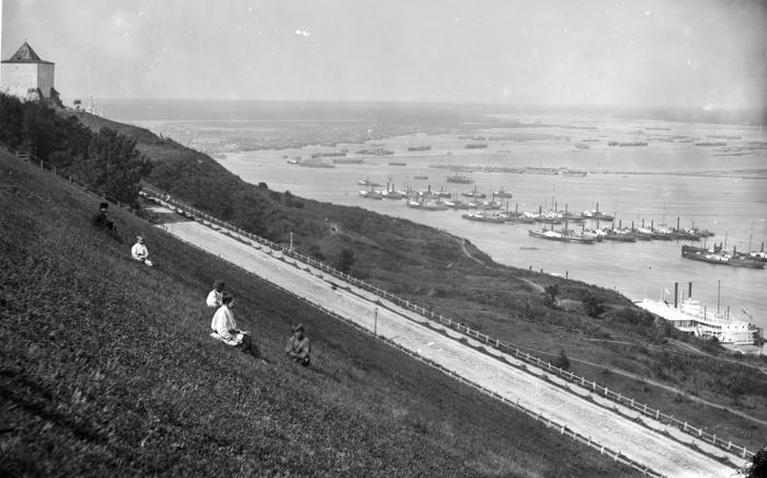Вид на Похвалинский съезд, Нижний базар и рейд реки Волги. Нижний Новгород.