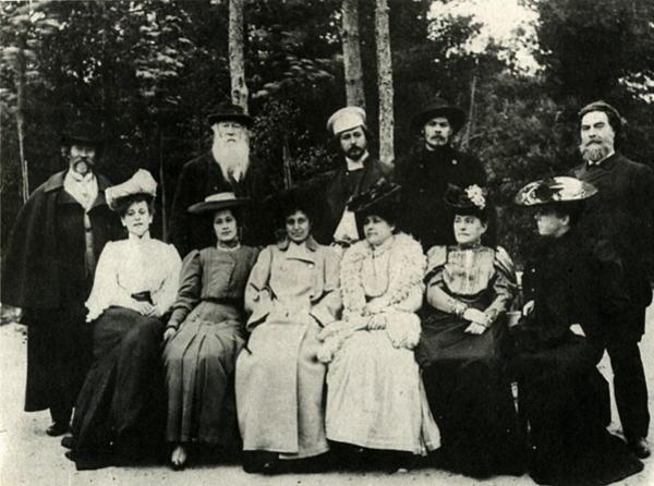 И. Репин, В. Стасов, Л. Андреев, М. Горький, И. Тарханов в обществе дам в Пенатах. 1904.