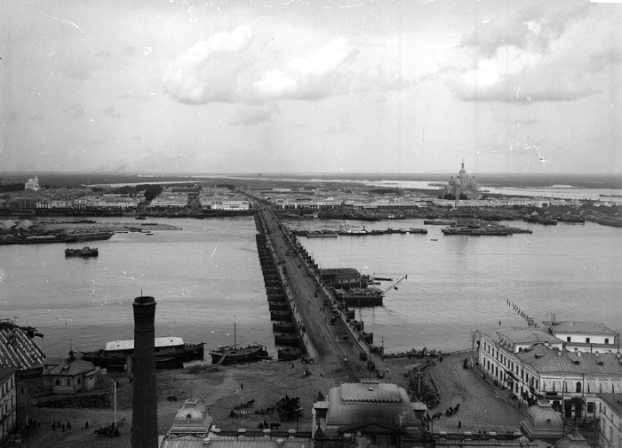 Общий вид ярмарочной стороны и плашкоутного моста. Нижний Новгород.