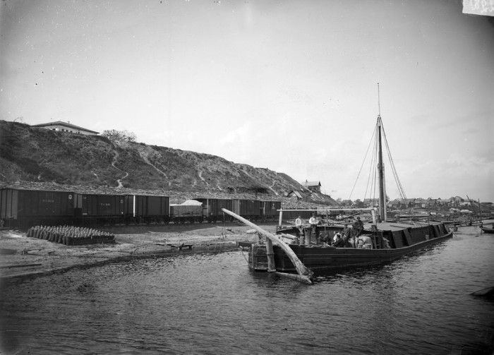 Общий вид города Кинешма и железнодорожного пути с реки Волги.