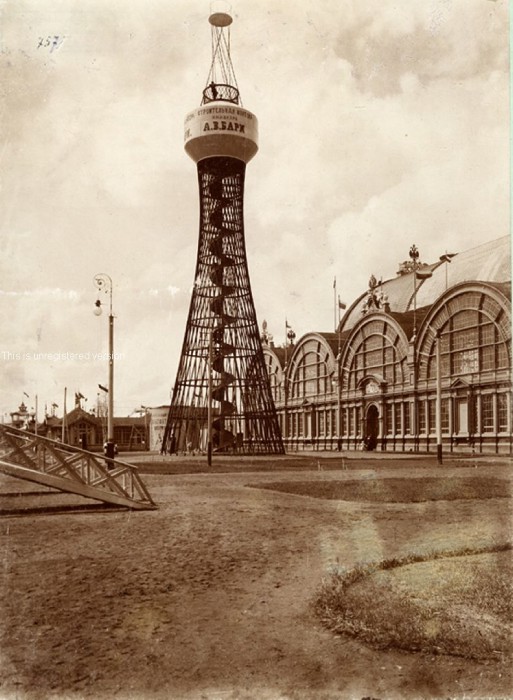 XVI Всероссийская промышленно-художественная выставка. Башня конструкции Шухова. Нижний Новгород.