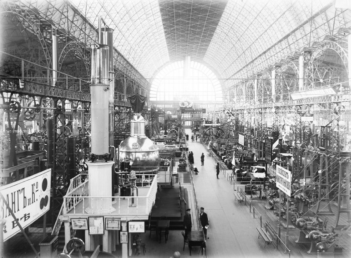 XVI Всероссийская промышленно-художественная выставка. Машинный отдел. Внутренний вид павильона. Нижний Новгород.