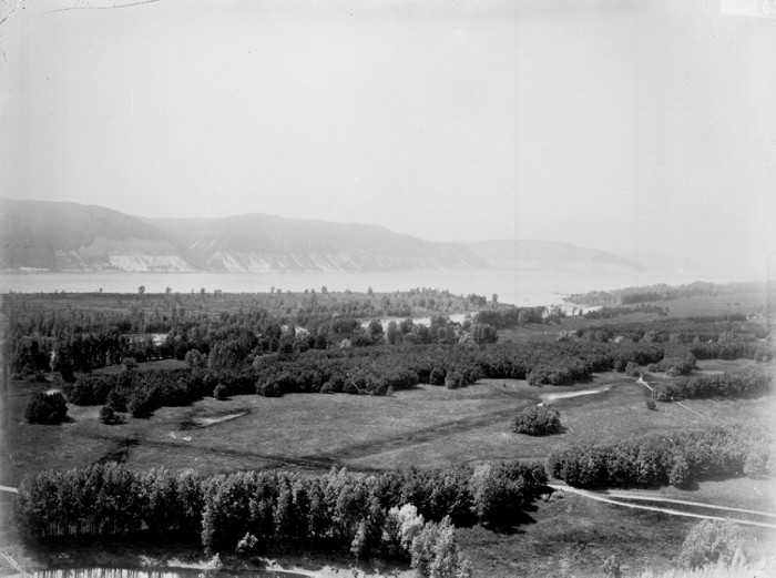 Вид на Жигулевские горы с Царева кургана. Посад Дубовка.