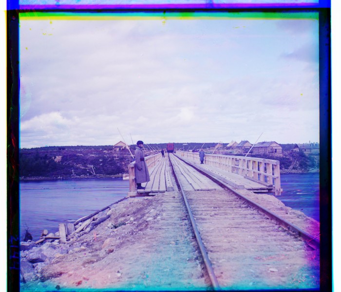 Ж.д. и пешеходный мост через р. Онду у станции Сороки.