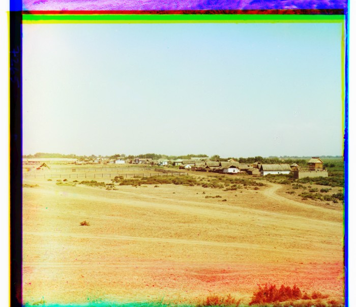 Бакинская губерния, Джеватский уезд, Муганьская степь. Пос. Петропавловское. Общий вид поселка (и р. Куры с сев.-зап.).