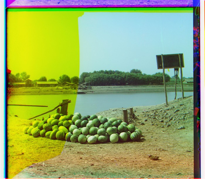 Бакинская губерния, Джеватский уезд, Муганьская степь. Пос. Петропавловское. Арбузы. Привоз по р. Куре в Петропавловское.