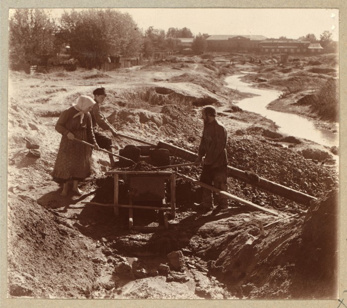 Пермская губерния, Екатеринбургский уезд, Березовский. Промывка старателями золотоносного песка.