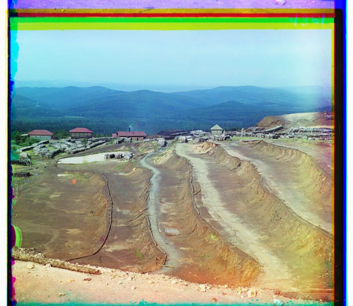 Боковой вид выработки у Саткинского завода. Златоустовский уезд Уфимской губернии.