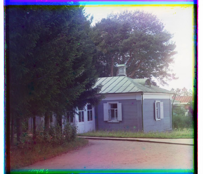 1911. Сторожка в Спасо-Бородинском монастыре (1820-е), где жила основательница монастыря Маргарита Михайловна Тучкова. Маргарита Михайловна, урожденная Нарышкина, впоследствии инокиня Мелания (1781-1852) - основательница Спасо-Бородинского монастыря. В 1806 г. вступила во второй брак с А.А. Тучковым, впоследствии убитым в сражении при Бородине. После бесплодных поисков трупа мужа Т. решила на месте битвы построить церковь. В 1820 г. храм был освящен. Доброта Т. привлекала к ней массу людей, и в 1833 г. была утверждена Спасо-Бородинская община. В 1838 г. Т. постриглась в монахини; в 1839 г. община по высоч. повелению переименована в Спасо-Бородинский общежительный монастырь 2-го класса.