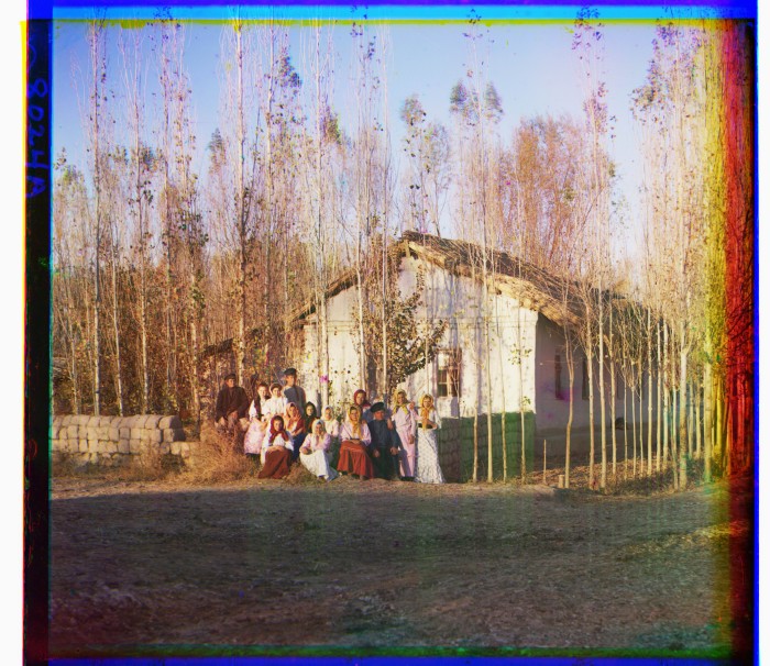 Туркестан. Голодная степь. Переселенческий хутор в Надеждинском поселке с группой крестьян.