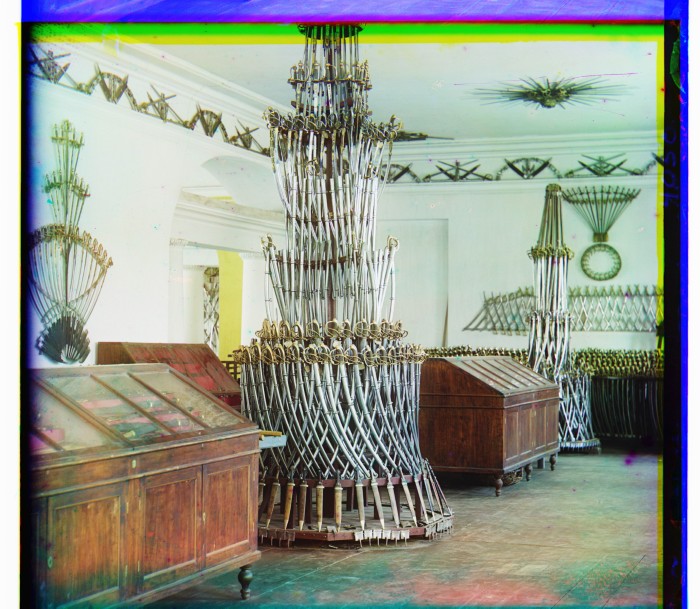 Горка из оружия в Арсенальном Музее. Златоустовский завод, г. Златоуст, Уфимская губерния.