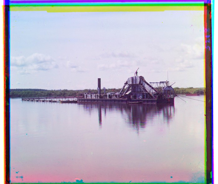 [1909]. Землечерпательная машина "Шекснинская 1" с черпаками и рефулером. Местоположение "Новгородская губерния" предположительно.
