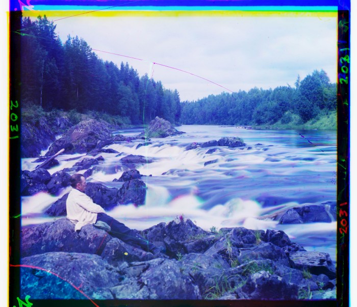 [1915]. Этюд у водопада Кивач (река Суна). На переднем плане - С.М. Прокудин-Горский.