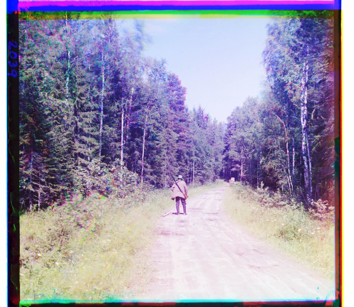 Река Суна. Этюд. В лесу у водопада Кивач. С.М. Прокудин-Горский стоит спиной.