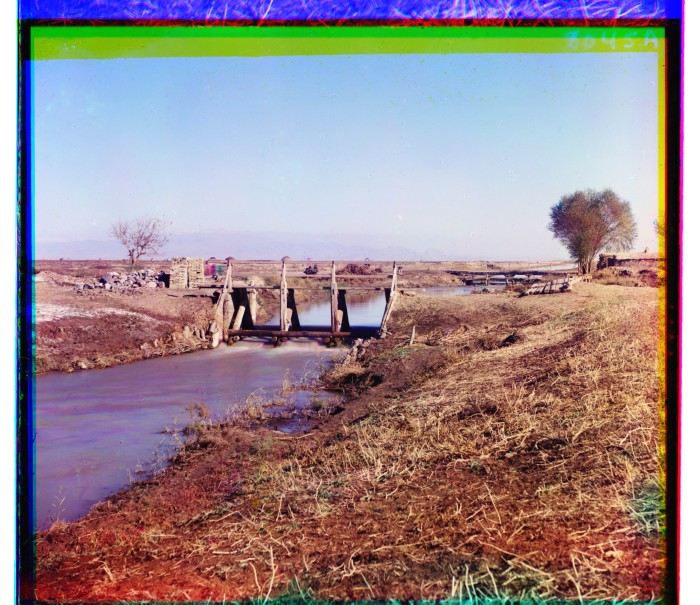 Туркестан. Голодная степь. Волынская подпруда на канале Императора Николая I. Вдали виден Волынский мост.