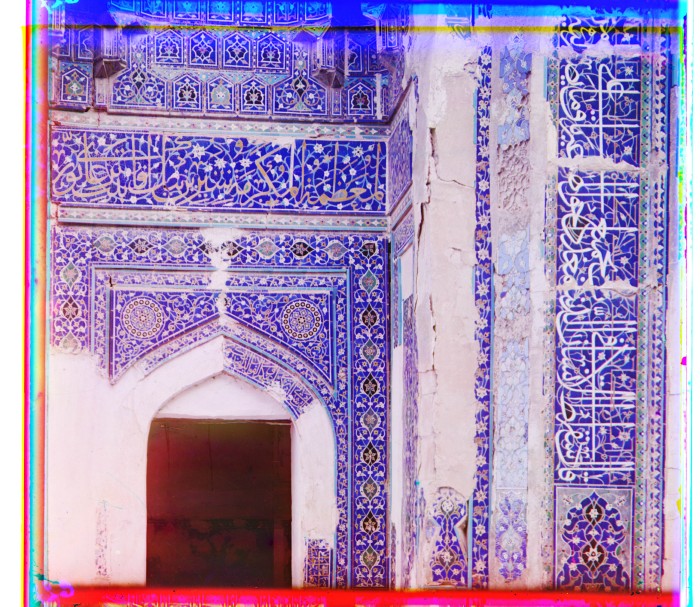 Самаркандская область. Самарканд. Образцы мозаичных стен в Шах-Зинде. Спарава внизу