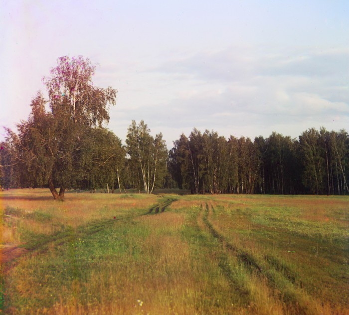 Березовый лес. Обратите внимание: на дороге три колеи - третья от лошади.