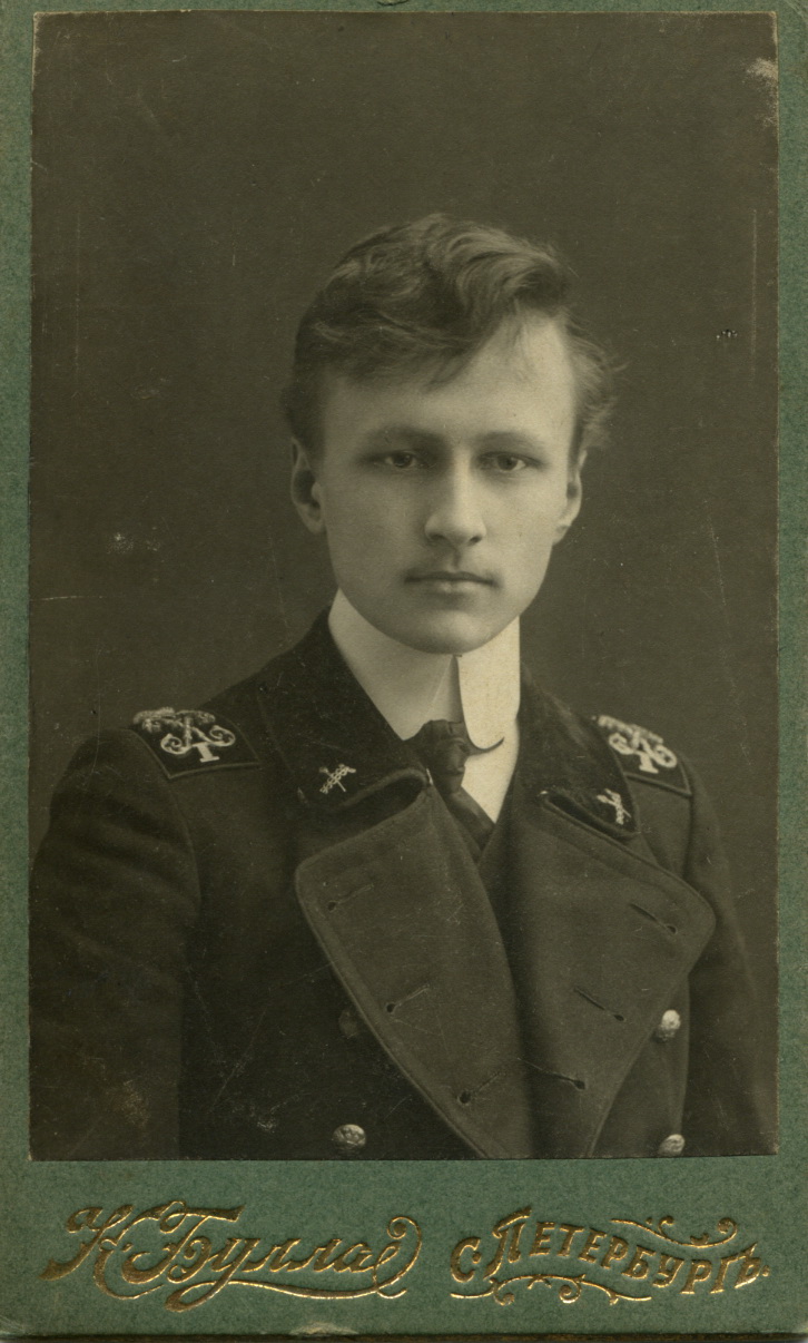 Фотоателье К. Булла, Санкт-Петербург. Портрет Георгия Русакова. На обороте надпись: «Мы не увлечемся взаимно и не полюбим друг друга, но спокойная дружба долго будет соединять нас. В память я дарю тебе, Лиза, эту карточку». 1911.