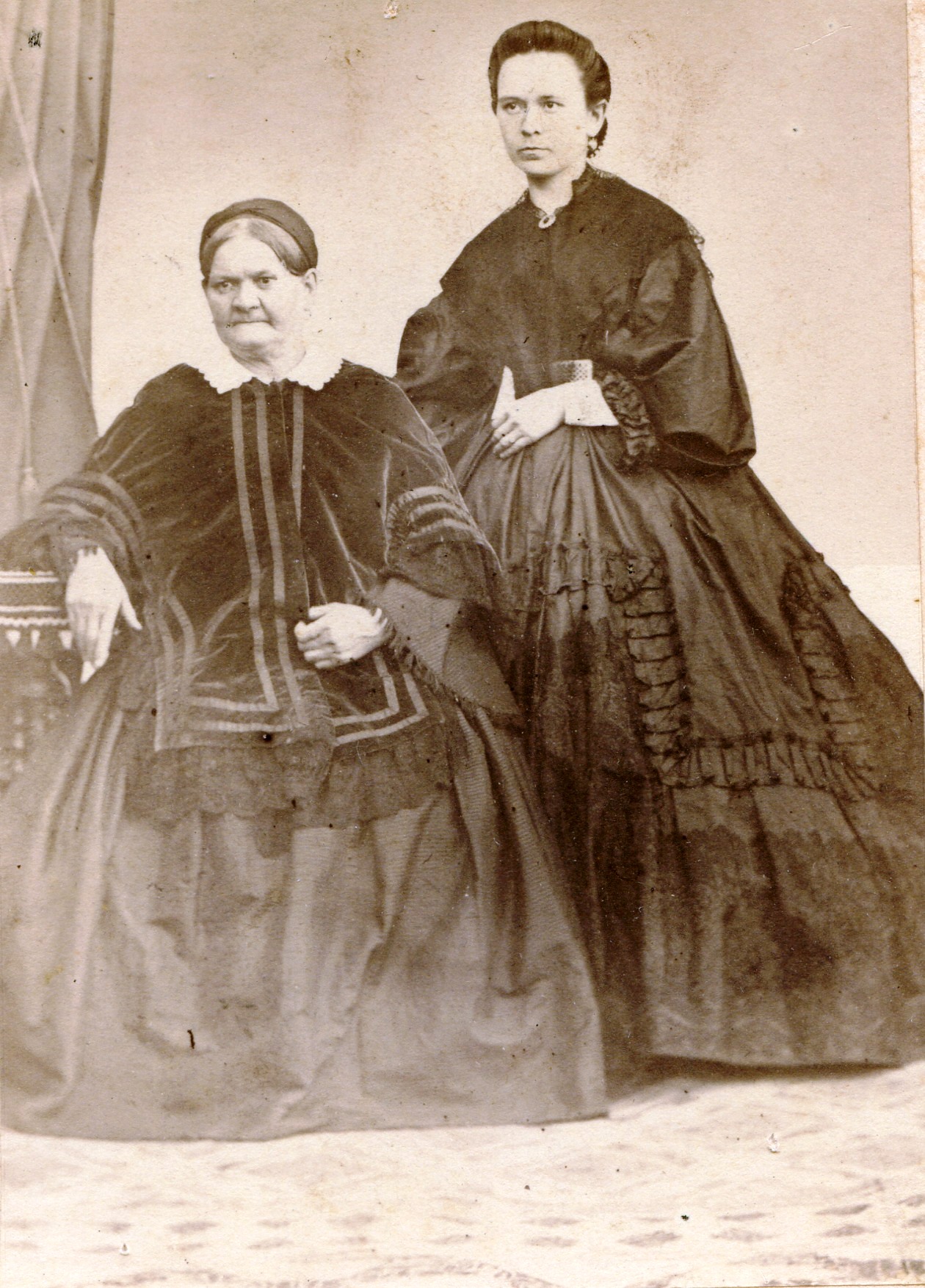 Фотография А.А.Зилетина. Портрет двух женщин в пышных платьях. 1860-1870. Место съемки не установлено.