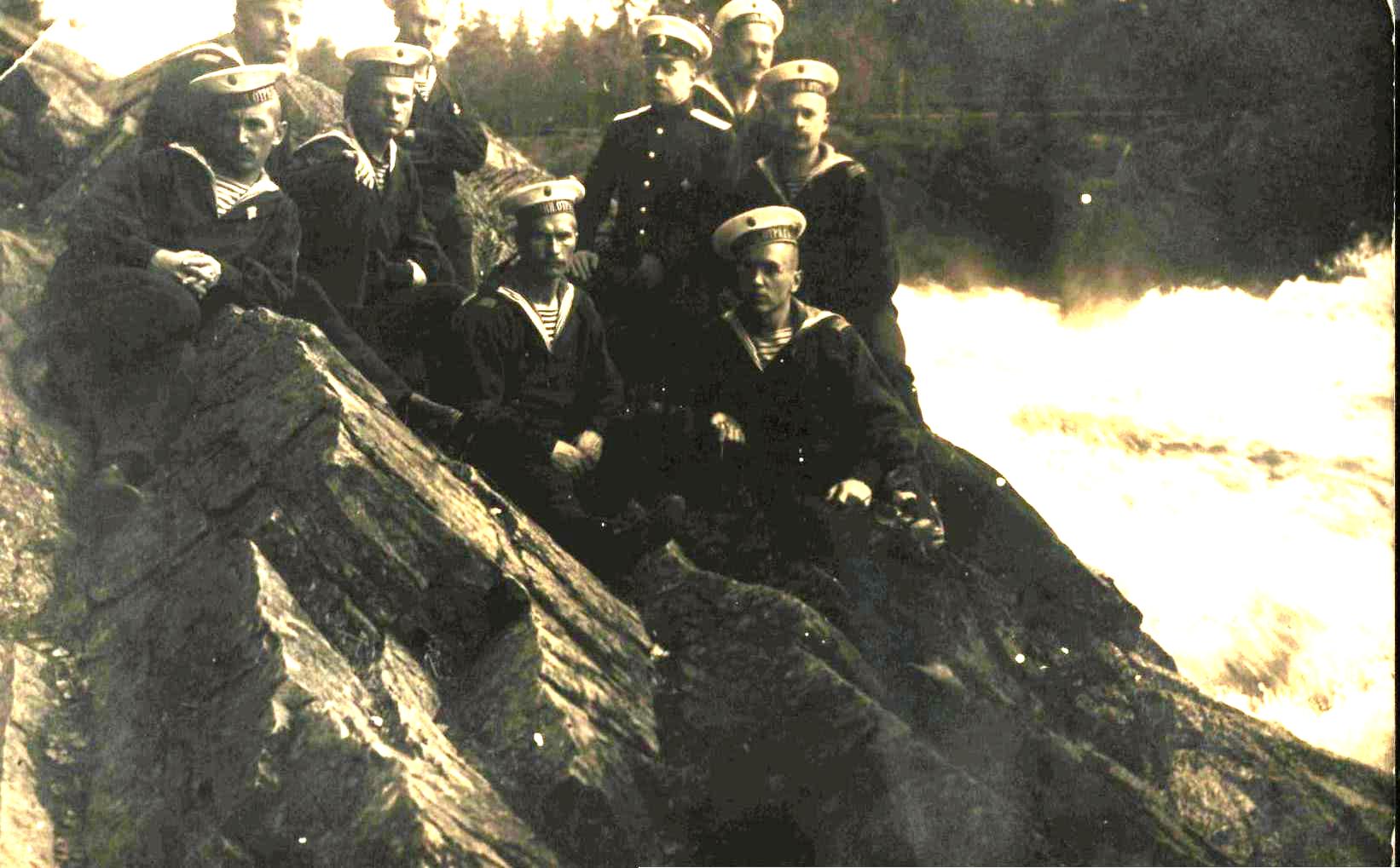Моряки с корабля «Николаев» на экскурсии на водопад «Иматра». Финляндия. 1913 г. 9 х 12. Архив Антоновых