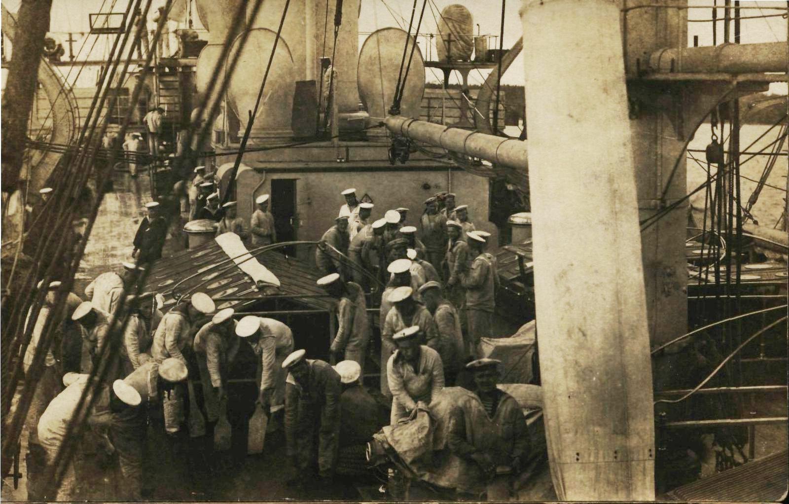 Уборка корабельной палубы. 1913. 9 х 12 Архив Антоновых
