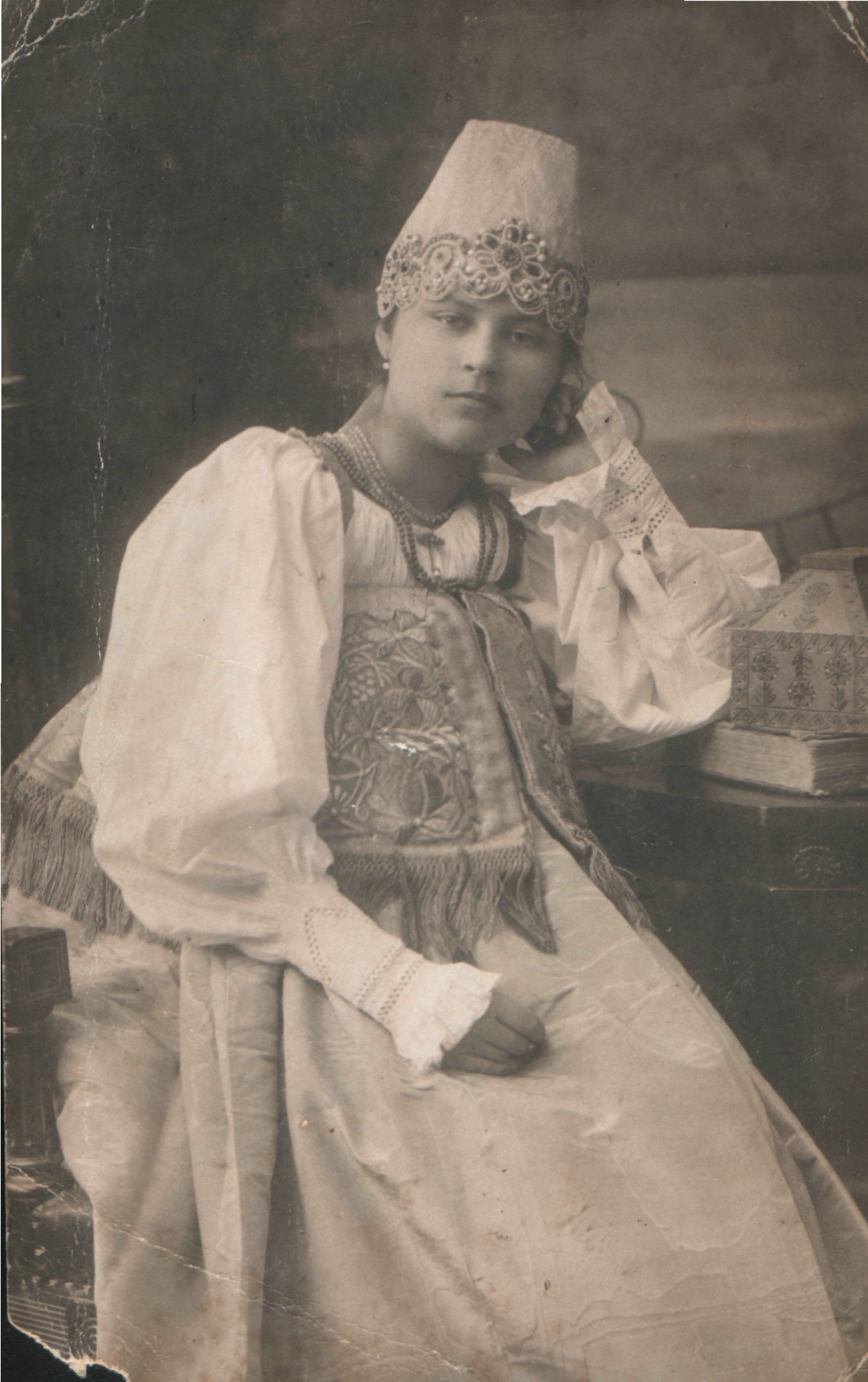 Неизвестный фотограф. Мария Васильевна Курапова в русском наряде. Муром, 1910. Архив Суховых.