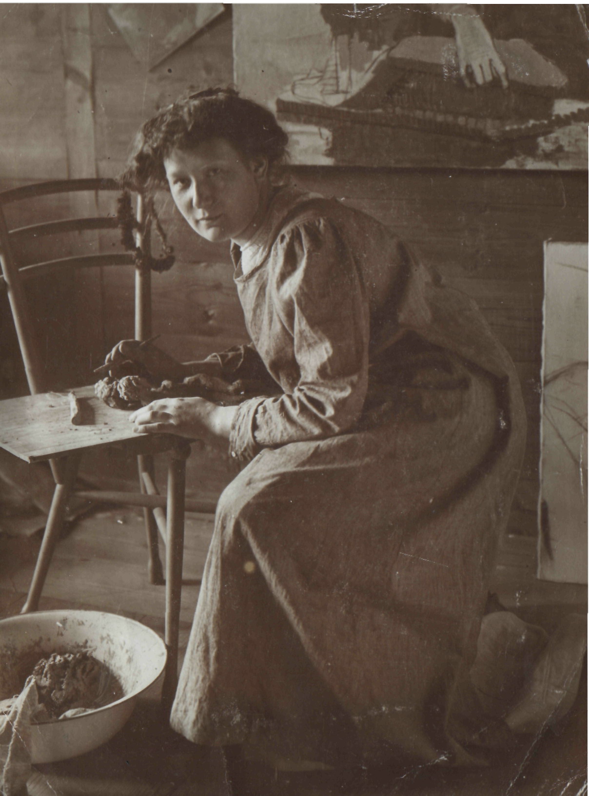 Ольга Львовна Биркина – художник-скульптор за работой. 1910-е. Архив Епанчиных.