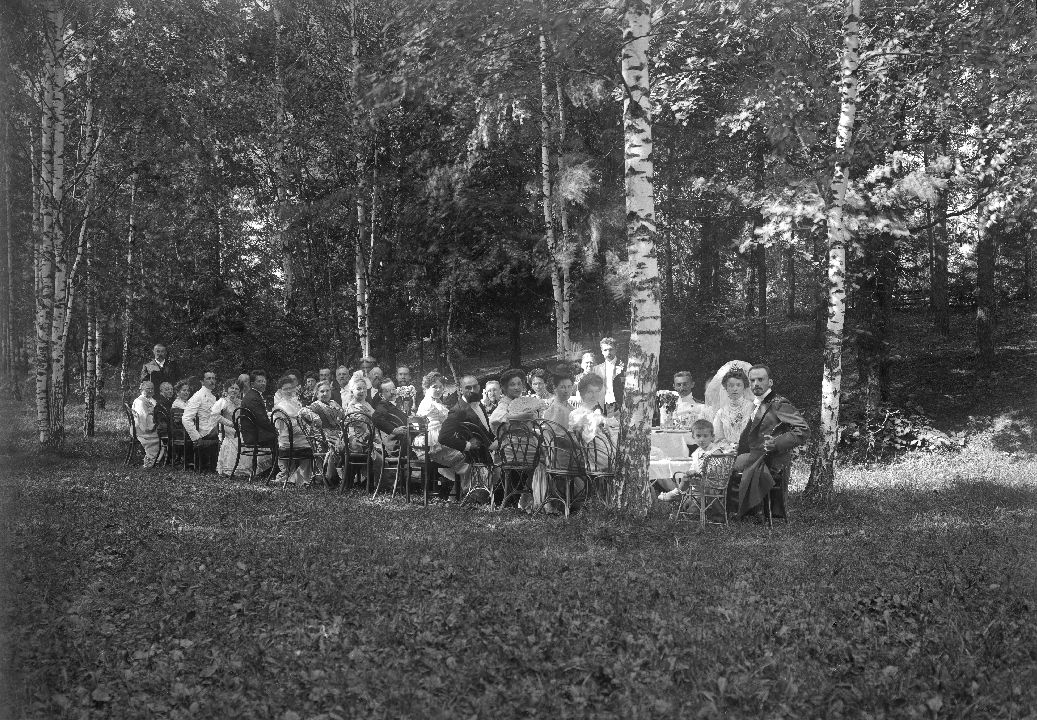 Свадьба В.А. Зевеке и Л.Д. Зевеке (Богословская). Застолье в парке. Автор: В.А. Зевеке Место события: г. Н.Новгород Дата: нач. ХХ в.