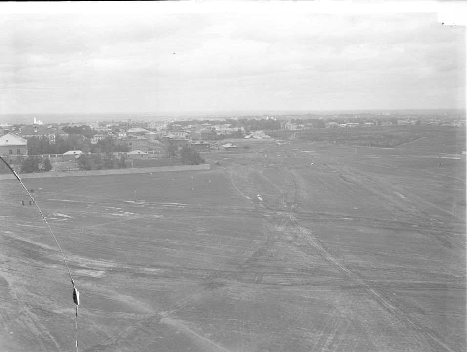 Общий вид с водонапорной башни на Арзамасский тракт. В центре Крестовоздвиженский женский монастырь. Дата: к. ХIХ – н. ХХ вв.Автор: М.П. Дмитриев Место съемки: г. Арзамас