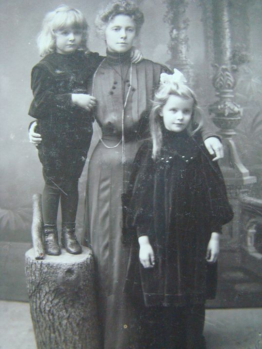 Групповой портрет. Мария Альфонсовна Зевеке с мальчиком и девочкой. Дата: не ранее 1905 г. Автор: Е. Микин Место события: г. Гапсаль
