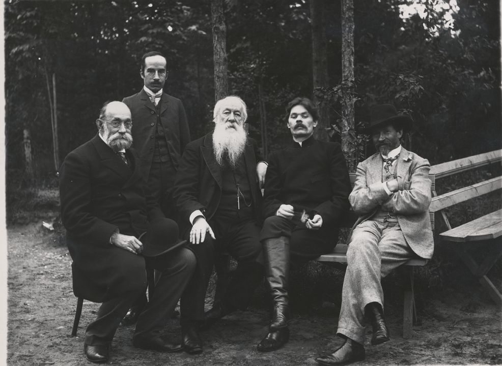 И.Е. Репин, А.М. Горький, В.В. Стасов и другие в саду на даче Репина. «Пенаты».