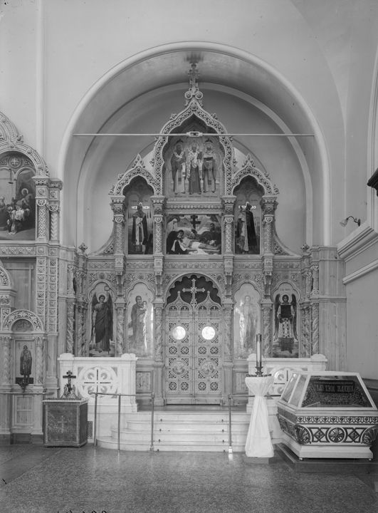 Сормово. Внутренний вид Спасо-Преображенского собора. Правый иконостас. Автор: М.П. Дмитриев Место события: Балахнинский уезд, Нижегородская губерния Дата: 1907 г.